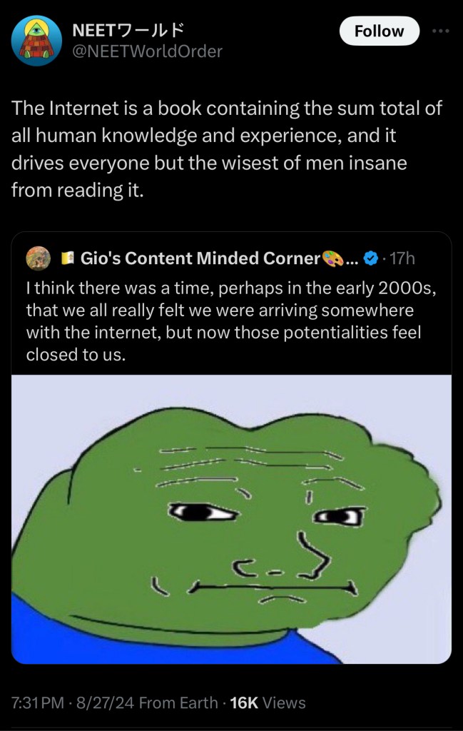 Gabriel Addams💽 is an ex-Jacker (revolutionary hacker) and current phantom (NEET). She has left behind a life as an online dissident and is trying to write a new story. In her self-styled fictional world, Gabri theorizes a serial killer AGI android targeting trillionaires, created by an e-girl with similar designs of her own…that decision, to write a novel, ends up changing the world.