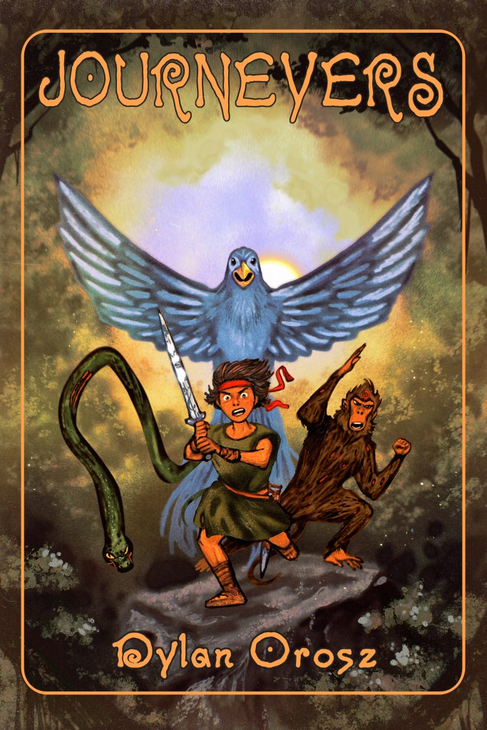 *Journeyers* is a fantasy action-adventure story set in a spiraling forest, where beasts talk and many mystical dangers stalk. A human, a snake, a monkey, and a bird work together to travel across this mythical land in search of their truths. Inspired by fantasy literature, manga, comic books, all my favorite adventure tales ~ and the natural world itself.